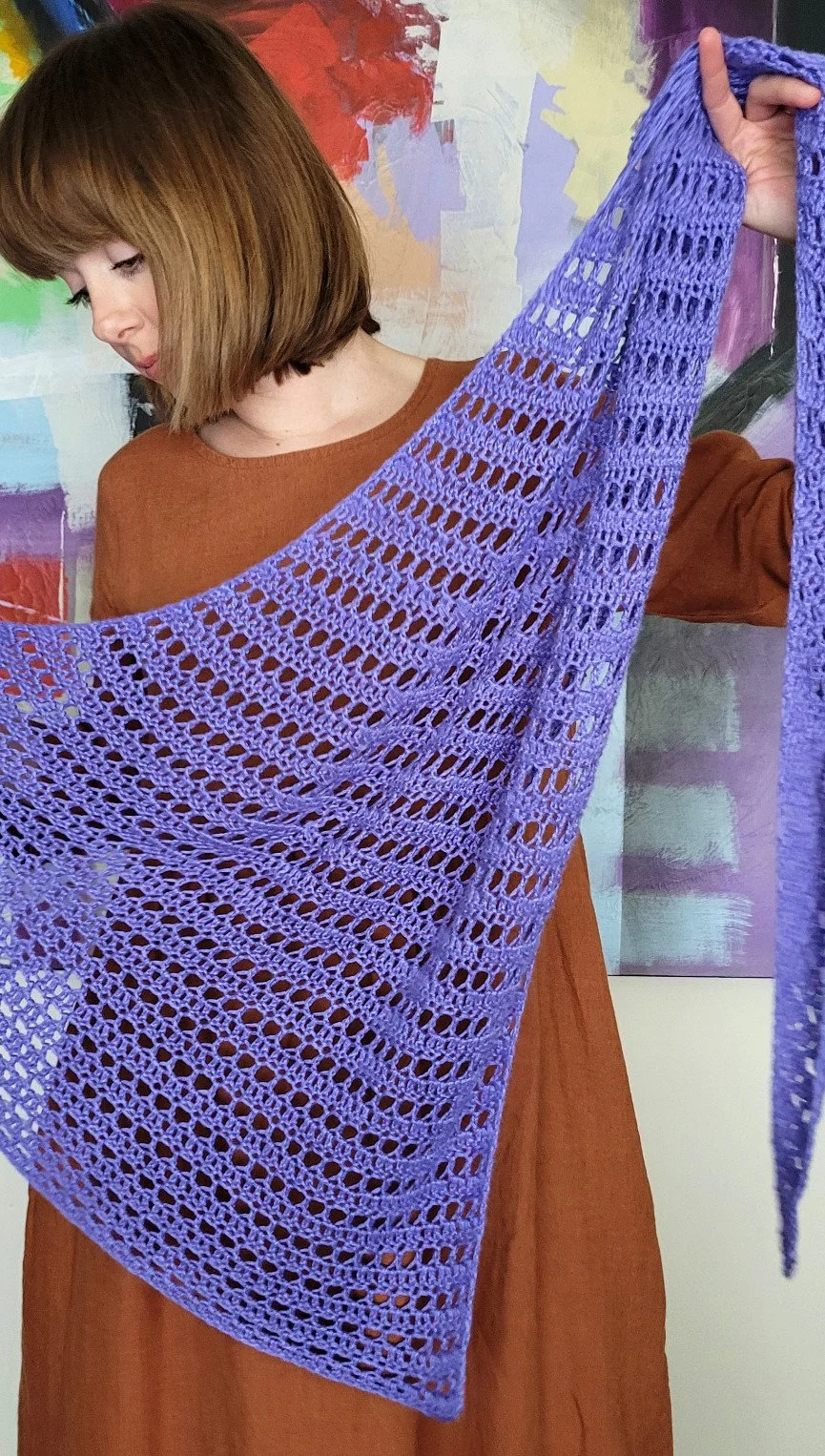 Valley Vista is a lightweight, asymmetrical crochet wrap.